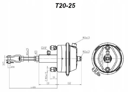 SIŁOWNIK HAMULCOWY PRZYCZEPY HYDRAULICZNO PNEUMATYCZNY T20-25