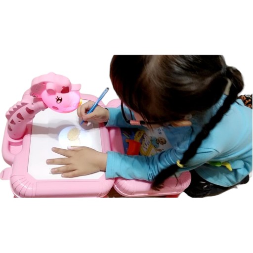 - Projektor może jednocześnie służyć dla dwójki dzieci, ze względu na to, że posiada dwa stoliki oraz dwie podstawy do rysowania.