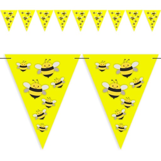 Papierowy baner w żółte, wesołe pszczółki. Idealna dekoracja sal przedszkolnych czy szkolnych z okazji święta pszczół, które obchodzimy 20 maja.