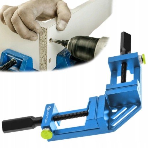 Ścisk umożliwia precyzyjny docisk klejonych elementów pod kątem 90°. Pomocny przy sklejaniu, skręcaniu, zbijaniu. Możliwość przymocowania do stołów warsztatowych.