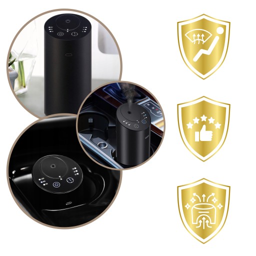 Bezprzewodowy i bezwodny dyfuzor zapachowy do aromaterapii Aroma to doskonałe rozwiązanie dla osób pragnących cieszyć się ulubionymi zapachami w samochodzie w sposób wygodny, bezpieczny i trwały. Dzięki zaawansowanej technologii i praktycznym funkcjom, każda podróż staje się przyjemnym doświadczeniem dla zmysłów, a trwała konstrukcja zapewnia długotrwa