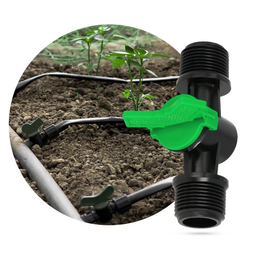 Zawór kulowy pozwala na odcięcie dopływu wody do danej linii nawadniania bez konieczności wyłączania całego systemu. Dzięki temu możesz łatwiej zarządzać nawadnianiem, a w razie konieczności szybko naprawić konkretny odcinek instalacji.
