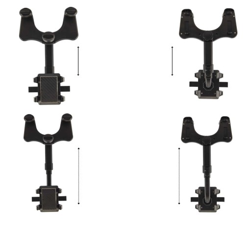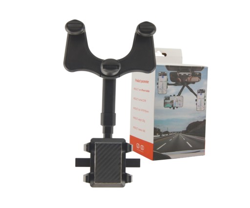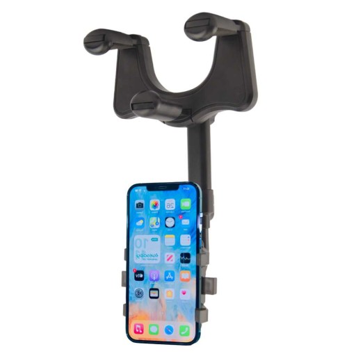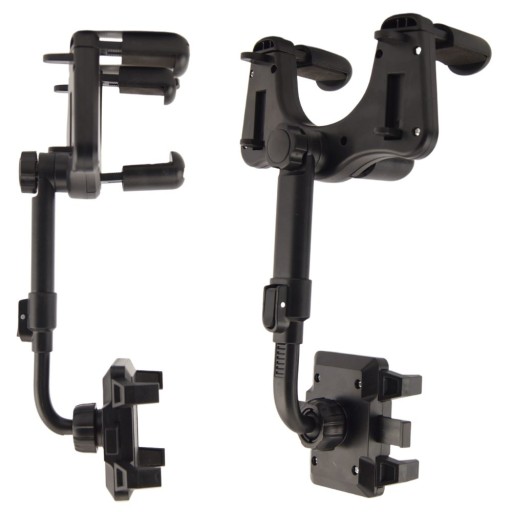 Uchwyt samochodowy na telefon montowany na lusterko, 10 cm szerokości, obrót 360°, stabilny