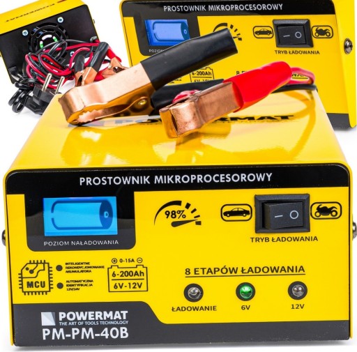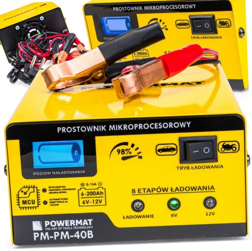 Prostownik PM-PM-40B marki Powermat to pierwsza na rynku ładowarka akumlatorów z mikroprocesorowym systemem kontroli i sterowania w technologii PWM z możliwością ładowania akumulatorów 6V i 12V, która inteligentnie i konkretnie dobierze odpowiednie parametry sprawiając, że Twój rozładowany i zaniedbany akumulator zostanie zregenerowany.