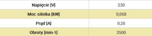 Wentylatory są dostarczane z silnikami jednofazowymi ~2600 obr/min.