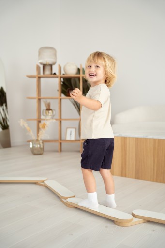 8 elementów, 8 łączników i 2 zakończenia, które możesz modyfikować w dowolny sposób - mostek można złączyć razem lub zbudować jedną dłuuuugą ścieżkę! Ćwiczenia na równoważni sprawiają, że Dzieci wzmacniają mięśnie głębokie (odpowiedzialne za np. utrzymanie prawidłowej postawy) i poprawiają koordynację ruchową.