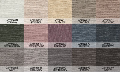 Gemma - miękka i przyjemna w dotyku plecionka, dzięki swojej kolorystyce materiał wpasowuje się we wszystkie nowoczesne stylizacje.