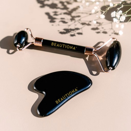 ZESTAW - MASAŻER DO TWARZY ROLLER CZARNY + KAMIEŃ GUA SHA