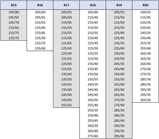 Pokrowce na koła opony zapasowe w rozmiarze XL pasują na opony o wymiarach: