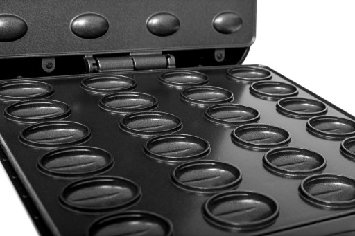 Nasze urządzenie do wypiekania ciasteczek w formie orzeszków napełnianych kremem pozwoli szybko przygotować 24 połówki przy jednym cyklu smażenia.