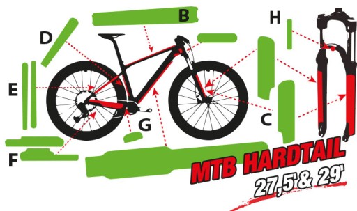 Глянцевая самовосстанавливающаяся защитная пленка премиум-класса для хардтейловых велосипедов MTB.