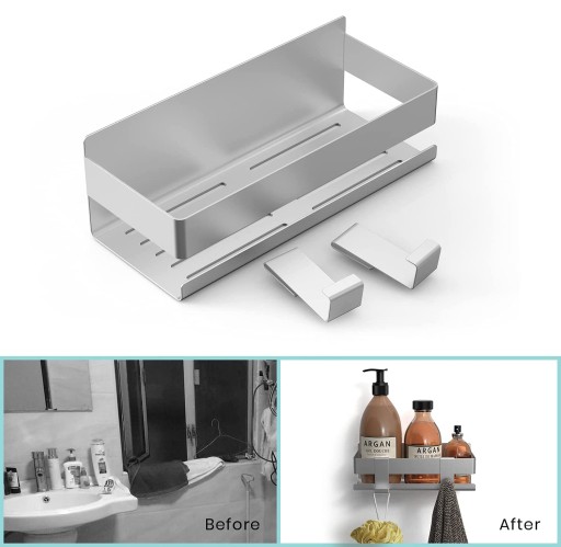 ✔️ Dodatkowe haczyki: za pomocą 2 elastycznych haczyków można zawiesić golarki, ściągaczki, gąbkę prysznicową i inne artykuły kąpielowe, bez konieczności odstawiania na podłodze, w zasięgu ręki