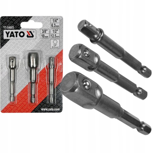 НАБОР YATO ШЕСТИГРАННЫХ ПЕРЕХОДНИКОВ ДЛЯ НАСАДОК 1/4 3/8 1/2 СТАЛЬ 40CR YT-04685
