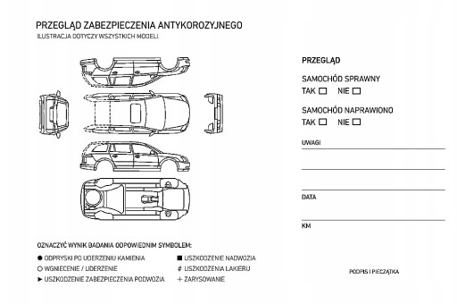 SUZUKI KSIĄŻKA SERWISOWA pozwala prowadzić szczegółową ewidencję przeglądów, napraw oraz zabezpieczeń antykorozyjnych.