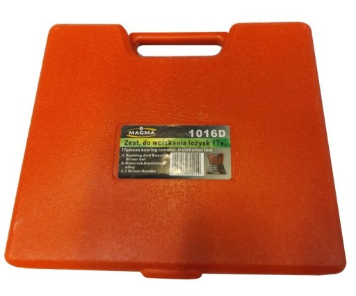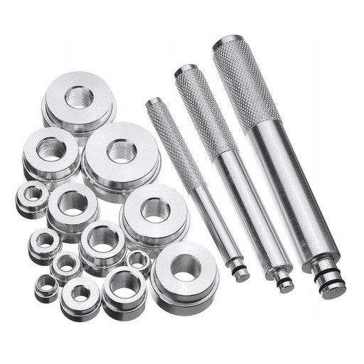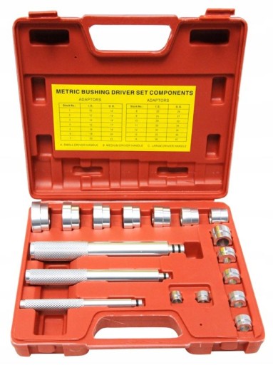 Zestaw do montażu i demontażu łożysk do tulei i na wał. W środku znajdują się trzy wybijaki do wciskania o różnych długościach oraz zestaw odpornych na uderzenia pierścieni o średnicach 12 - 42 mm. Dzięki szerokiemu zakresowi wymiarów rurek i adapterów, zestaw ten jest w stanie obsłużyć wiele różnych rozmiarów łożysk i tulei. Wszystko zapakowane łatwą w przenoszeniu i przechowywaniu plastikową walizkę, dzięki czemu bez problemu można przechowywać całość zestawu w jednym miejscu, bez ryzyka zgubienia poszczególnych elementów.