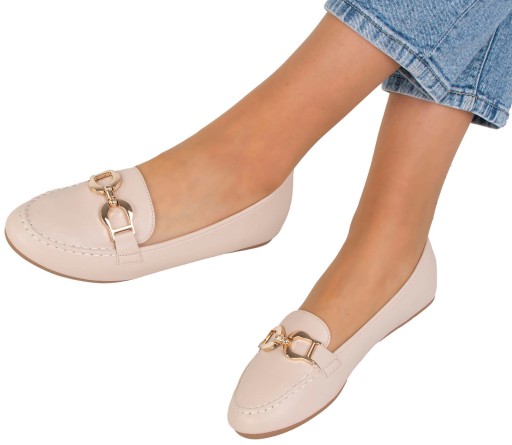 7400 BEŻOWE MOKASYNY PÓŁBUTY SKÓRZANE ŁAŃCUCH 38