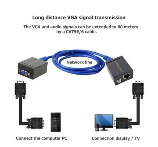 Extender VGA do 60M po skrętce RJ45 Cat 5e/6.