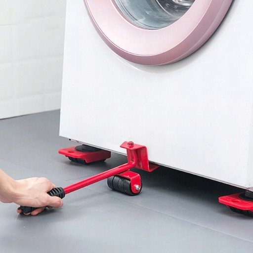 Unieść krawędź, narożnik czy podstawkę mebla za pomocą metalowej dźwigni, następnie wsunąć rolkę oraz opuścić ładunek.