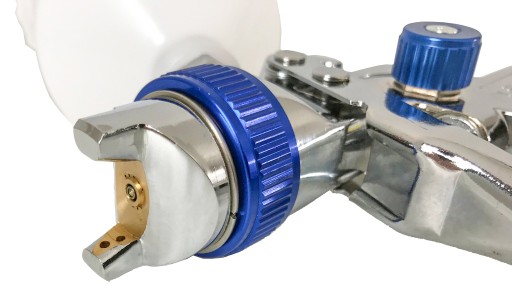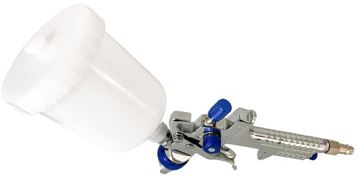 Wysokiej jakości pistolet lakierniczy wyposażony w trzy regulacje: powietrza, farby i strumienia. Pistolet zaopatrzony jest w niezależny mechanizm uruchamiania powietrza i farby. Dzięki takiemu rozwiązaniu po lekkim naciśnięciu spustu z dyszy wydostaje się sprężone powietrze, a następnie po zwiększeniu nacisku na spust farba. Ma to duży wpływ na na jakość malowania.