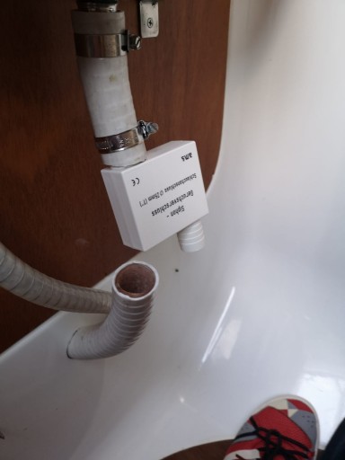 Syfon zapobiega powstawaniu zapachów z instalacji wodnej oraz zbiornika wody szarej. Czyści się go spłukując wodą.