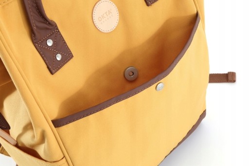 Jednokomorowy plecak na laptopa marki OKTA model Yuuko 1086 został wykonany z wytrzymałego na zadrapania i wodoodpornego materiału – oxford. Wewnątrz plecaka znajduje się miękka kieszeń na laptopa w rozmiarze do 14,1”, oraz pięć kieszonek na akcesoria i drobiazgi, w tym jedna zapinana na zamek. W główny rant plecaka zostało wszyte druciane wzmocnienie na wzór torby lekarskiej - dzięki temu po otwarciu plecak jest sztywny i zapewnia bardzo łatwy dostęp do wszystkich rzeczy w środku. Z przodu plecaka znajduje się kieszeń na podręczne rzeczy zapinana na napę. Po bokach plecaka umieszczono głębokie kieszenie na napój lub parasolkę. Z tyłu plecaka zaprojektowano dodatkowe zapięcie, przez które szybko można dostać się do wnętrza plecaka, bez konieczności otwierania głównego zamka. Szelki plecaka są solidne uszyte, a plecak dobrze układa się na ramionach. Plecak posiada dwie rączki, które można spiąć ze sobą skórzaną opaską z napą, i wygodnie przenosić plecak w ręce jak torbę. Jest to bardzo przydatna funkcja, która świetnie sprawdzi się np. podczas tłoku w autobusie, tramwaju czy w kolejce. Plecak OKTA Yuuko jest pojemny i dzięki swej funkcjonalności sprawdzi się zarówno na co dzień, jak i na krótkich wyjazdach np. weekend w górach.