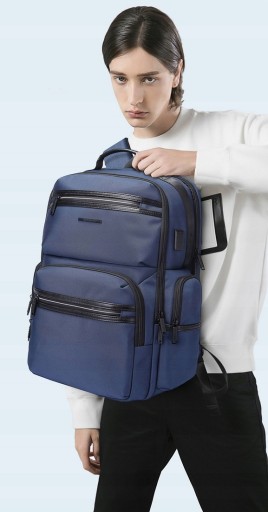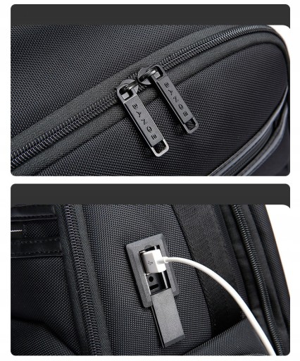 Bardzo pojemny i świetnie zorganizowany, trzykomorowy plecak marki Bange o symbolu BG-2601, pomieści laptopa w rozmiarze do 17,3 oraz ubrania na krótki wyjazd. Wykonany został z wytrzymałego i impregnowanego nylonu, który ochroni zawartość plecaka przed warunkami atmosferycznymi. W pierwszej komorze z tyłu umieszczono kieszeń na laptopa w rozmiarze do 17,3 oraz kieszeń na tablet, obie zapinane na elastyczny pasek z rzepem. W drugiej komorze, z przodu plecaka, wyznaczono miejsce na zapakowanie ubrań, które można spiąć elastycznymi paskami, aby się nie przesuwały. Znajdują się tutaj również trzy kieszonki na drobne rzeczy, zapinane na wodoodporne zamki. Z przodu plecaka umieszczone są trzy kieszenie na podręczne rzeczy, jedna z nich zawiera organizer na akcesoria i długopisy. Po bokach plecaka znajdują się mniejsze ( zapinane na zamek) kieszenie na napój, parasolkę lub podręczne rzeczy. Z lewej strony plecaka umieszczono zewnętrzne złącze USB, dzięki czemu nie ma konieczności wyciągania power banka z plecaka, aby naładować telefon lub inne przenośne urządzenie. Złącze jest zamykane na klapkę, dzięki czemu jest chronione przed zamoknięciem. U góry plecaka znajduje się solidny uchwyt do wygodnego przenoszenia go w ręce nawet przy dużym obciążeniu. Szelki plecaka są wyprofilowane i solidnie uszyte, oraz spinane dodatkowym paskiem, aby lepiej rozłożyć ciężar przy maksymalnym zapakowaniu plecaka. Tył plecaka i szelki są wyłożone miękkimi gąbkami, dzięki czemu jest on wygodny w noszeniu. Na tylnej ścianie plecaka znajduje się również bezpieczna kieszeń na portfel lub telefon oraz nylonowy pas, dzięki któremu można założyć plecak na rączkę torby lotniczej. Bange BG-2601 to bardzo pojemny plecak, który z pewnością doskonale sprawdzi się w pracy, jak i w kilkudniowej podróży.