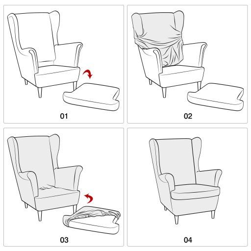 Pokrowce pasują na fotele typu Uszak, których wymiary są zbliżone do wymiarów na grafice: