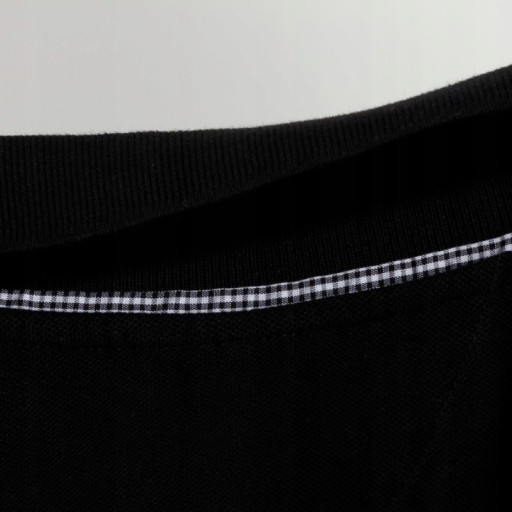 Ozdobne wzmocnienia z materiału w kratkę na rękawach, listwie z guzikami i wewnątrz kołnierzyka podwyższające jakość wyrobu i wydłużające jego żywotność
