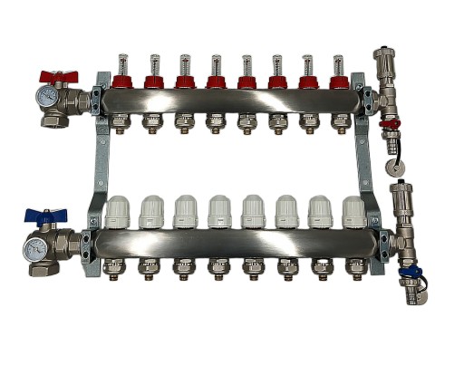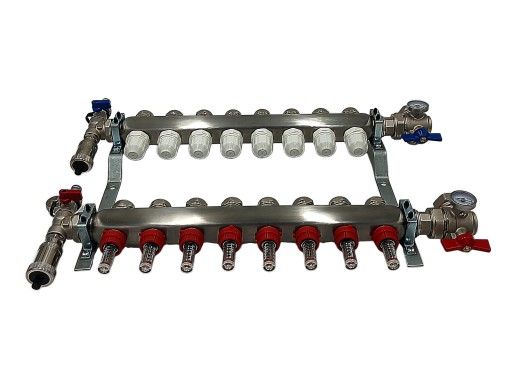 Rozdzielacz ogrzewania podłogowego to urządzenie używane w systemach ogrzewania podłogowego, które ma na celu kontrolowanie i regulację przepływu ciepłej wody lub medium grzewczego do poszczególnych sekcji podłogi. System ogrzewania podłogowego jest wyjątkowo komfortowym i efektywnym sposobem podgrzewania pomieszczeń, gdzie ciepło jest emitowane równomiernie z podłogi, co tworzy przyjemne warunki termiczne.
