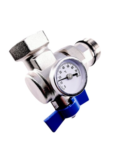 Zawór z półśrubunkiem i termometrem to komponent wykorzystywany w systemach ogrzewania. Dzięki niemu można regulować przepływ ciepłej wody w instalacji. Zawór ten ma wbudowany termometr, co umożliwia monitorowanie temperatury wody w czasie rzeczywistym. Główne zalety to łatwa obsługa, precyzyjna kontrola temperatury oraz możliwość szybkiej diagnozy ewentualnych problemów.