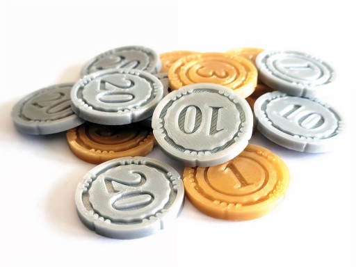 Przedmiot ten nie jest zabawką i nie nadaje się dla małych dzieci. Kolor rzeczywisty może nieznacznie odbiegać od zdjęcia ze względu na indywidualne ustawienia ekranu. Elementy gry (takie jak pojemniki, karty itp.) nie są elementem oferty. Zestaw wykonany jest w technologii druku 3D. Dzięki użyciu nietoksycznego, biodegradowalnego i przyjaznego środowisku materiału. Przedmiot oferowany to 10 szt. monet. Projekt zastrzeżony. Produkt na zamówienie.