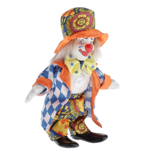 Głowa lalki klauna, dłoń i podeszwa są wykonane z materiału ceramicznego, ubrania są wykonane z wysokiej klasy złotego jedwabnego brokatu, a kończyny można skręcać, mogą mieć również wiele pozycji.