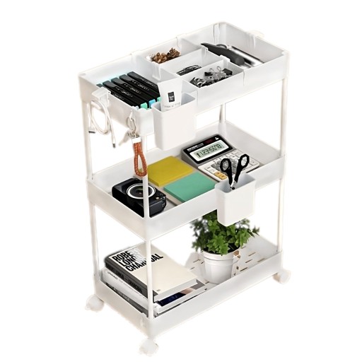 - Wielofunkcyjność - Ten wózek załatwia wiele codziennych rzeczy. Możesz go umieścić w kuchni, łazience, biurze, gabinecie - wszędzie tam, gdzie potrzebujesz dodatkowego miejsca do przechowywania.