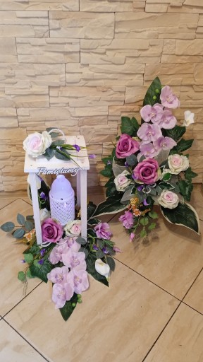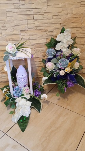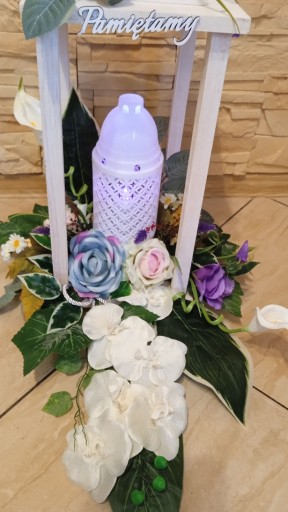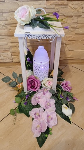 Latarnia Z OŚWIETLENIEM Kwiaty ZNICZEM kompozycja