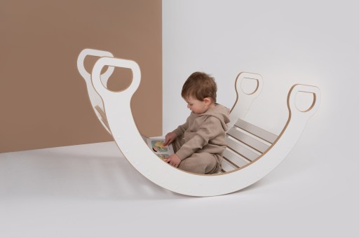 Bujak ze zjeżdżalnią w domu, to plac zabaw IDEALNY! Z jednej strony płyty jest ścianka wspinaczkowa, a z drugiej superśliska zjeżdżalnia. Zjeżdżalnie można też położyć na bujaku i stworzyć RÓWNOWAŻNIĘ - polecamy do tego bose stópki.