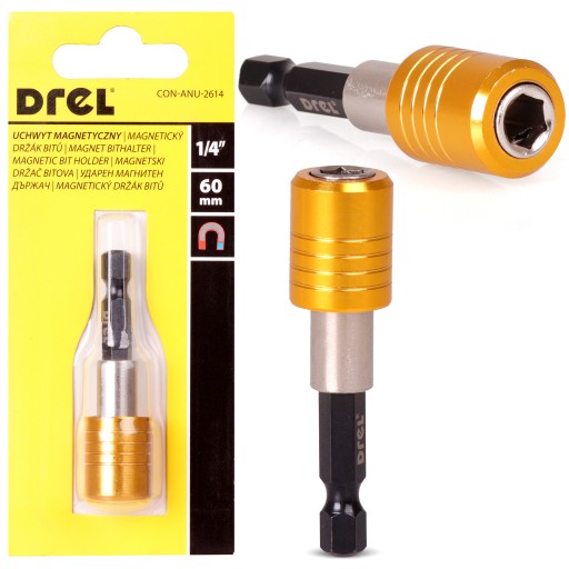 To wytrzymały uchwyt o długości 60mm i uchwycie 1/4 cala, który posiada magnes oraz szybkozłącze, zapewniając pewne i szybkie mocowanie wiertła, końcówki bitowej, lub innych narzędzi.