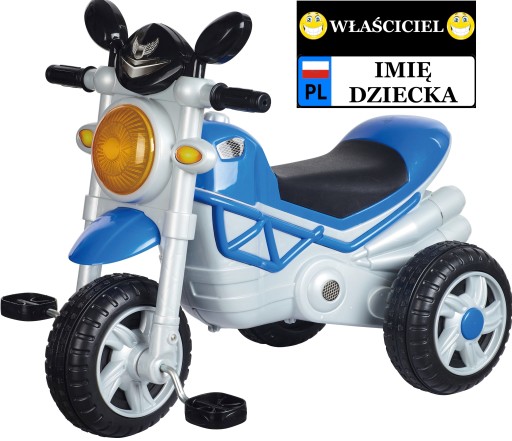Jeździk trójkołowy motorower na pedały chodzik pchacz - pojazd interaktywny + tablica z imieniem obdarowanego dziecka