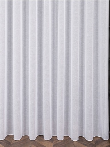 Nowoczesna, gładka, zwiewna i ładnie układająca się firana wykonana z wysokiej jakości tkaniny batystowej o strukturze lnu w białym kolorze, która bardzo naturalnie zdobi okno.