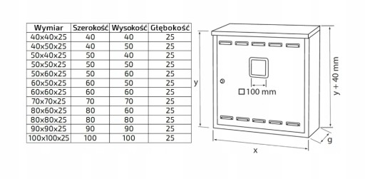50 szer. x 50 wys. x 25 gł.