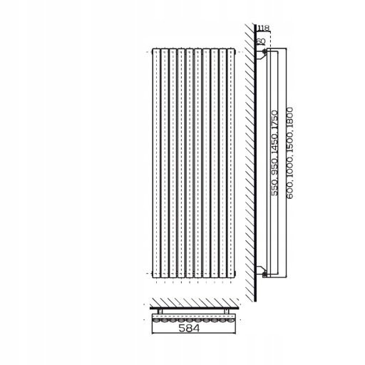 Комнатный радиатор БЕЛЫЙ 1500 x 584, вертикальный RENE