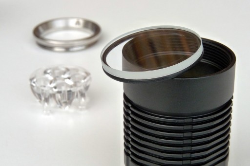 Obudowa: Aluminium z powłoką HA-III w kolorze czarnym, stalowy pierścień ochronny głowicy