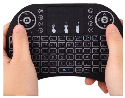 Podświetlana klawiatura I8 to wielofunkcyjna, nowoczesna mini klawiatura QWERTY z wbudowanym panelem dotykowym obsługującym gesty. Klawiatura wyposażona jest w bezprzewodowy odbiornik NANO USB, który możemy schować z tyłu pod klapką co chroni przed zgubieniem gdy nie jest używany.