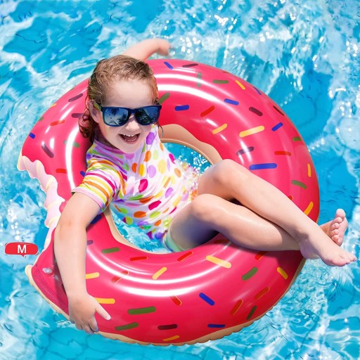 Kolorowe koło dmuchane w kształcie nadgryzionego pączka, wykonane z wysokiej jakości plastiku PCV, gwarantującego wytrzymałość.