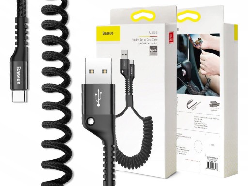 Kabel Baseus Spring umożliwia szybkie ładowanie oraz transfer danych. Kabel pozwala na ładowanie oraz transfer plików pomiędzy urządzeniami wyposażonymi w wejście USB oraz urządzeniami wyposażonymi w wejście USB typu C. Przewód został wykonany w formacie sprężynowym, dzięki czemu nie plącze się i nie zajmuje dużo miejsca. Kabel rozciąga się do długości 1 metra, dzięki czemu podłączone urządzenie może być wygodnie obsługiwane w każdej odległości. Wzmocnione gumowe końcówki i oplot zapewniają długą żywotność. Kabel obsługuje szybkie ładowanie prądem do 2 A.