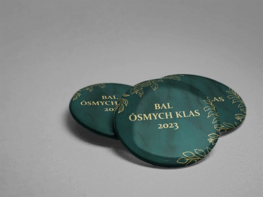 Przypinki okrągłe o średnicy 56 mm.
