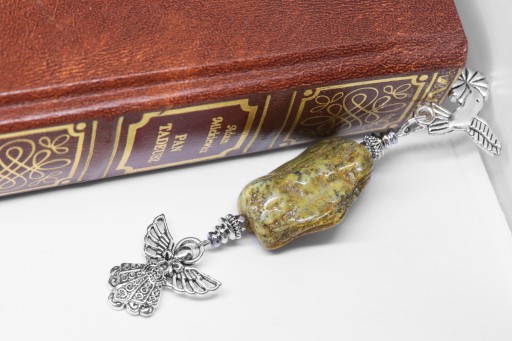 Elegancka zakładka do książki z zawieszką w kształcie anioła z dodatkiem bursztynu.