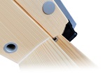 Innowacyjny system mocowania specjalnie wyprofilowanych zawiasów, zapobiega pęknięciom drewna, wyrwaniu zawiasów i wepchnięciu skrzydła do środka. Rozwiązanie to jest kilkakrotnie wytrzymalsze od dotychczas znanych i stosowanych.
