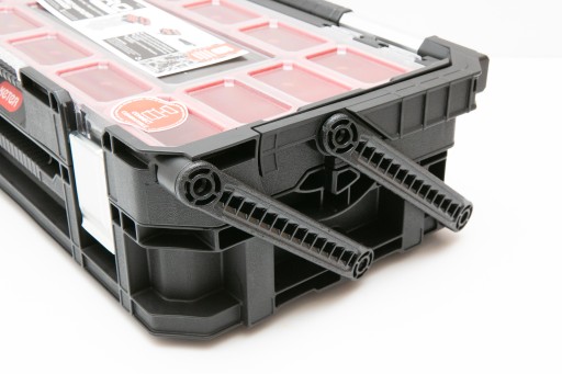 Profesjonalny organizer do przechowywania małych części i akcesoriów, wyposażony w funkcjonalne pojemniki ułatwiające przechowywanie. Posiada także specjalne zatrzaski oraz boczny uchwyt - te elementy zostały wykonane z wytrzymałego metalu. Organizer został wykonany z wysokiej jakości plastiku, odpowiednio uszczelniony, co gwarantuje dłuższą żywotność sprzętu. Dzięki tym cechom praca będzie bezpieczna i komfortowa.