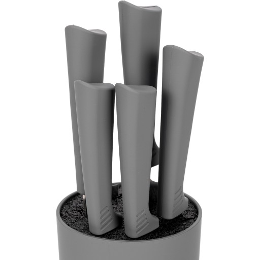 Linia Marco cechuje się minimalistycznym, industrialnym designem, zestaw pięciu noży będzie idealną ozdobą na kuchennym blacie w nowoczesnej kuchni.