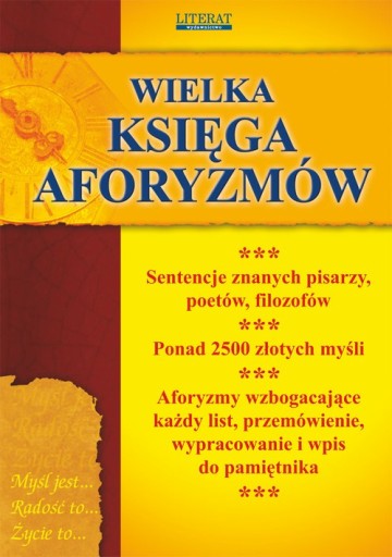 Ponad 2500 złotych myśli, sentencji znanych pisarzy, poetów, filozofów i polityków. Najciekawsze myśli o ludziach i świecie. Duża różnorodność stylistyczna: od słów pełnych powagi do wypowiedzi nasyconych humorem. Aforyzmy wzbogacające każdy list, przemówienie, wypracowanie i wpis do pamiętnika. Układ tematyczny pozwala szybko znaleźć sentencje na daną okazję. Atrakcyjna szata graficzna.